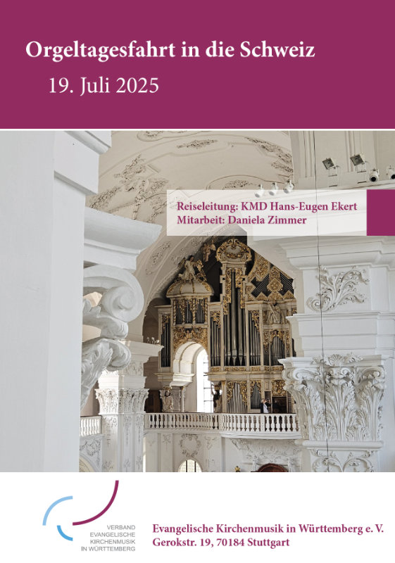 am Samstag, 19. Juli veranstaltet der Verband Evangelische Kirchenmusik in Württemberg eine Orgel-Tagesfahrt in die Schweiz: Ganz herausragende Orgeln sind auf dem Programm: